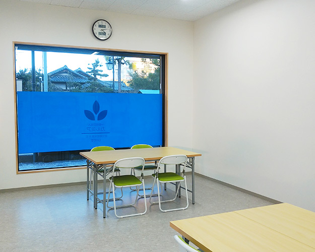 ◆作業室 ◆多目的室(兼、休憩室) ◆静養室 ◆相談室 ◆事務室 ◆給湯室(冷蔵庫、ウォーターサーバー) ◆トイレ ◆利用者専用ロッカー ◆利用者専用下駄箱